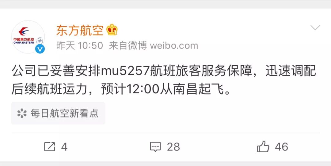 10时42分,东方航空公司通过官方微博,对MU5257航班氧气面罩意外脱落一事作出正面回应。