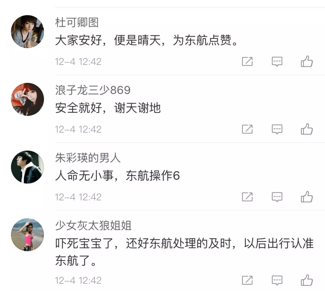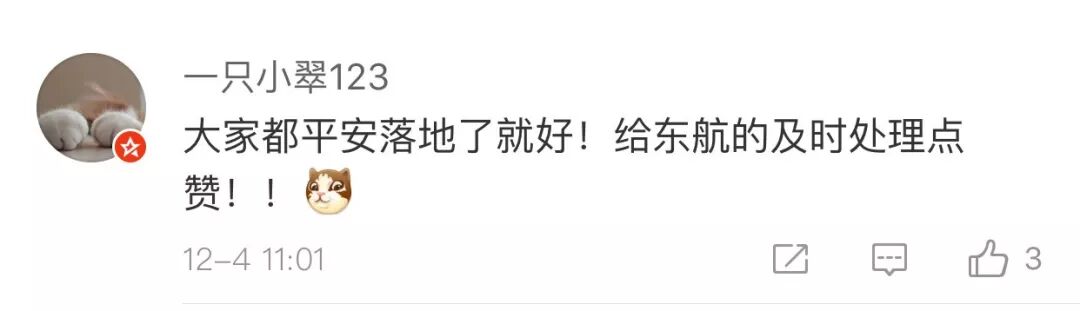 和以往多数航空公司作派不同的是,东方航空公司赶在自媒体消息大面积扩散之前,主动地发布了航班就近备降的消息。避免了各种不必要的猜测,省去了媒体反复求证的过程。显示了国内航空公司在处置突发事件方面的水平与自信。不少网友纷纷为此点赞。