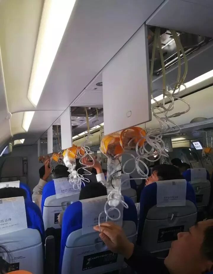 通过照片,我们不难看出,氧气面罩为大面积脱落。对此,机上乘客是各种懵。