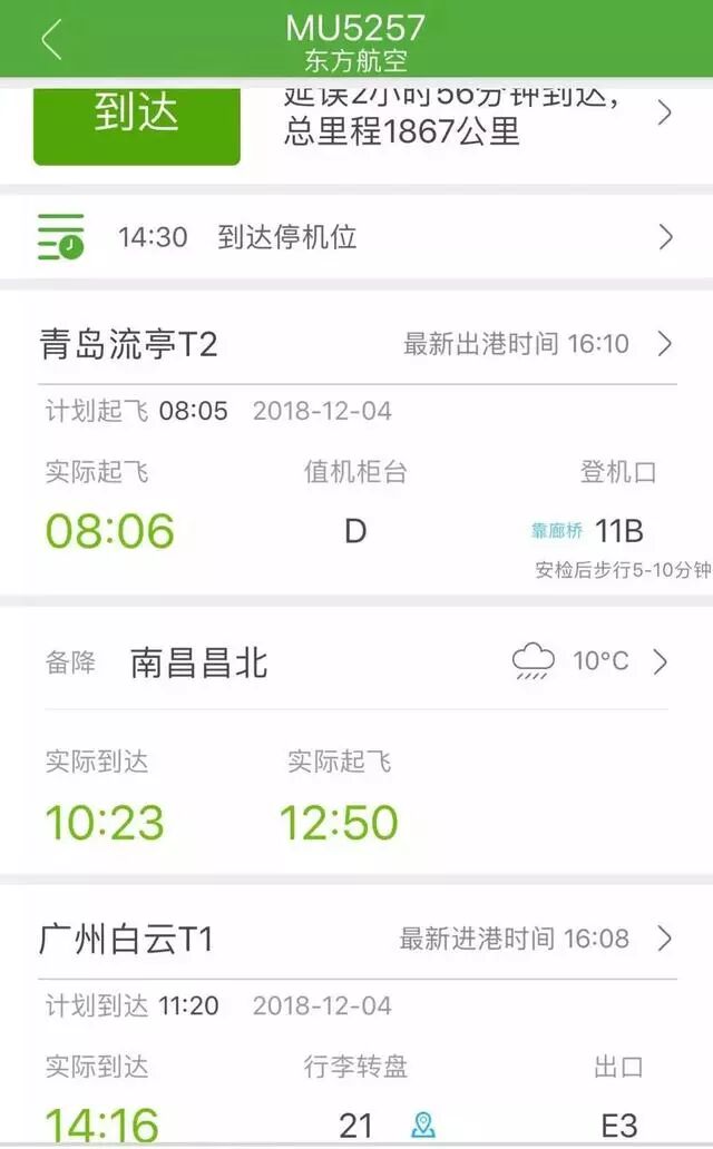 12月4日上午,不少接机的广州市民惊讶地发现,由东方航空执飞的MU5257航班,突然出现了备降南昌的信息提示。