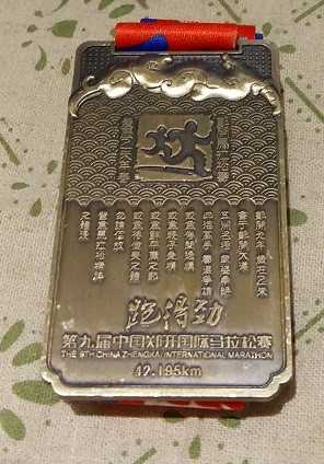 不考虑北马天马对我来说有学校自己后勤的因素,郑开大概是我参加过的最适合刷成绩的比赛,没有之一。理由如下:首先,赛道及其平坦,从前到后几乎没有任何坡。跑过北马的人应该知道,到了36km进了奥森面对大大小小的坡路是多么艰难。其次,天气,郑开每年举行的时间决定了比赛时不会太冷也不会太热,对于跑马来说,气温是很重要的成绩影响因素。最后,后勤给力,作为深受广大跑友喜爱的赛事,郑开组委会在后勤组织方面可谓经验丰富,沿途补给点补给充足,更好的是,每个到终点的选手如果需要的话都会有志愿者陪同完成一些赛后事宜,其他比赛,暂时没有见到过。还有,郑开的奖牌很有特色,尽管不能说每次的都很好看(比如今年好像说是个葫芦,不过我第一眼就觉得是个梨),但至少不是千篇一律的圆牌牌了。