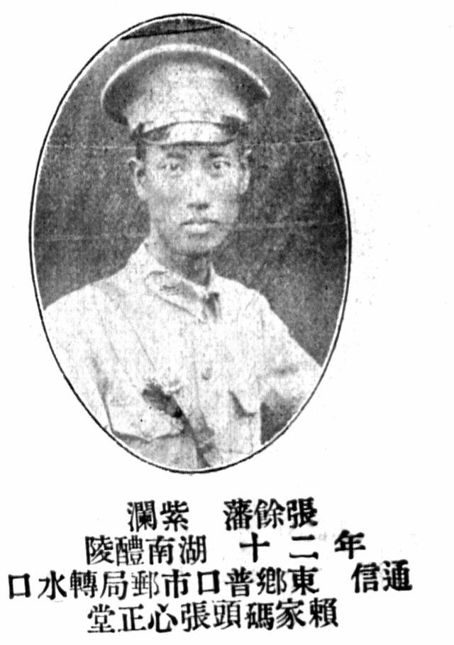 张余藩 湖南醴陵人,黄埔军校第四期步科1团3连,1905年生,别号:紫澜,籍贯:湖南醴陵,部别:黄埔军校第四期步科1团3连,其他无记录,入校通信地址:东乡普口市邮局转水口赖家码头张心正堂。