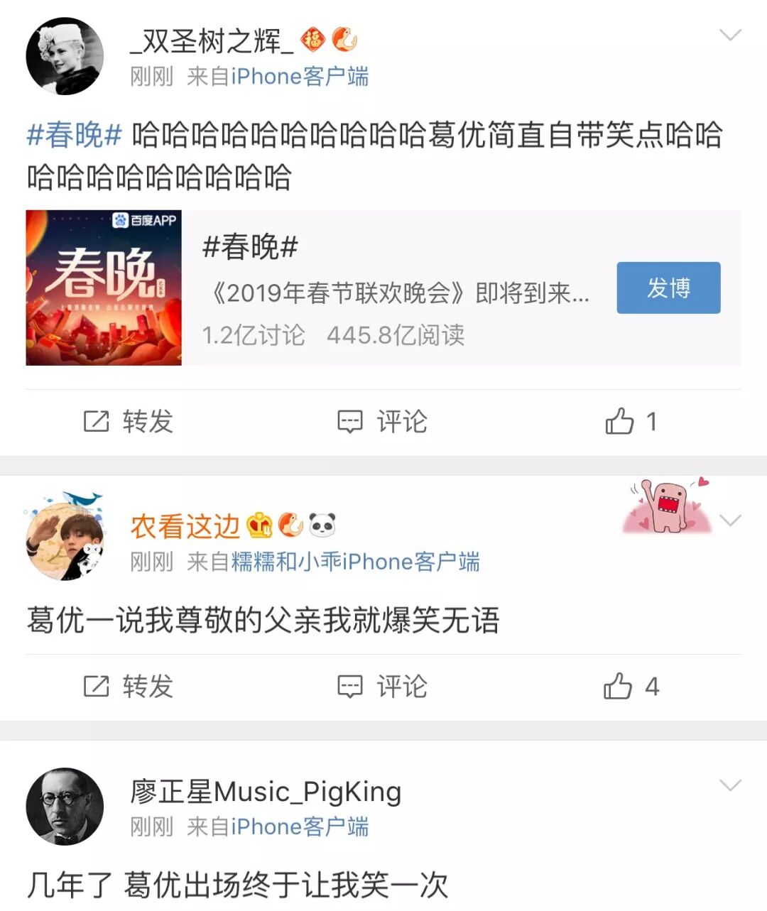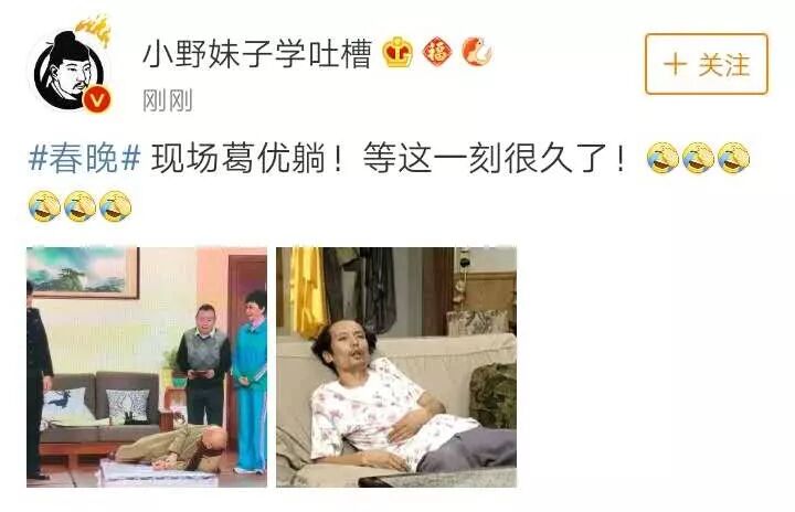小品《“儿子”来了》是个反诈骗的节目,由蔡明、潘长江和乔杉以及首度登台的“葛大爷”葛优和近年人气直升的“博士后”翟天临出演。